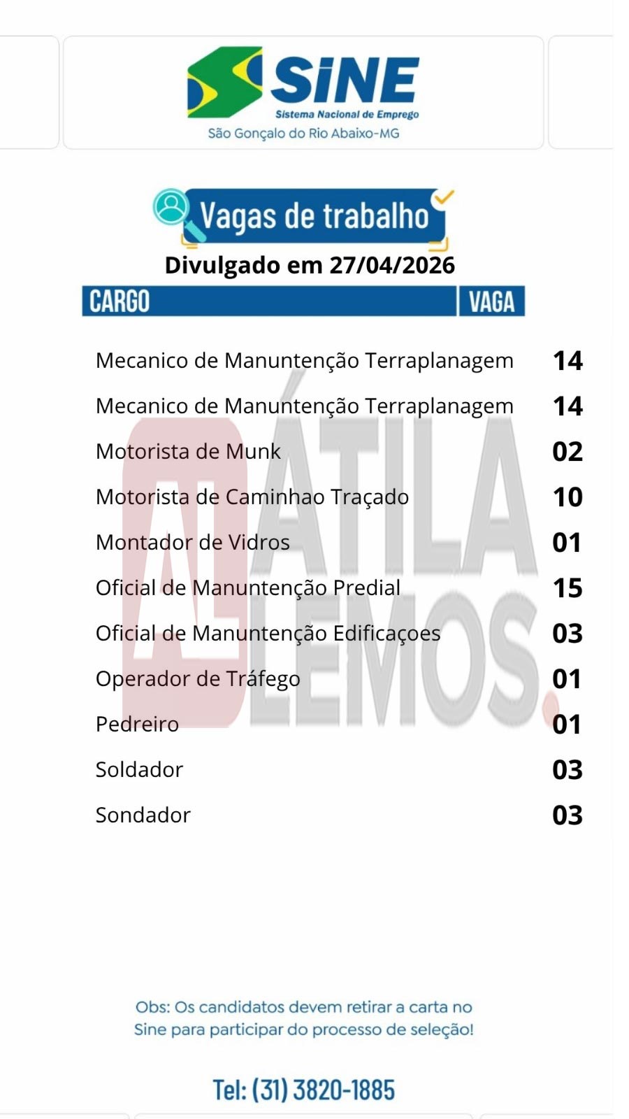 - O site www.atilalemos.com.br atua exclusivamente na divulgação de oportunidades de emprego. Não realizamos processos de seleção, entrevistas ou contratações.
